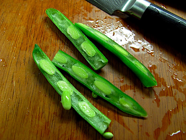 I used my pairing knife to halves the green beans. So pretty!